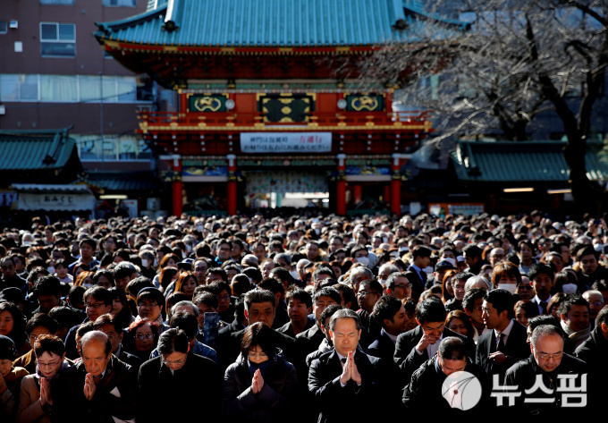 | [도쿄 로이터=뉴스핌] 정윤영 인턴기자 = 4일 일본 도쿄(東京)에서 시민들이 새해 첫 영업일을 맞이해 사업 번영과 행운을 불러다 준다고 알려진 간다 묘진(神田明神) 신사를 방문해 기도를 올리고 있다. 2019.01.04. |