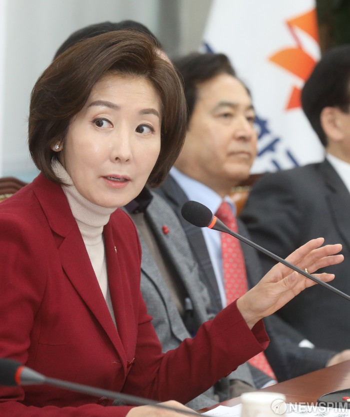 [서울=뉴스핌] 최상수 기자 = 나경원 자유한국당 원내대표가 9일 오전 서울 여의도 국회에서 열린 원내대표-중진의원 회의에서 발언하고 있다. 2019.01.09 kilroy023@newspim.com
