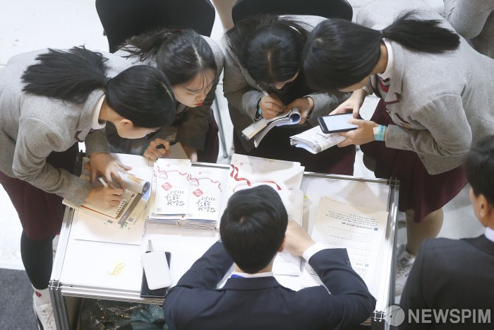 [서울=뉴스핌] 이형석 기자 = 9일 오전 서울 서초구 aT센터에서 열린 2019 공공기관 채용정보박람회에서 학생들이 취업 상담을 받고 있다. 2019.01.09 leehs@newspim.com