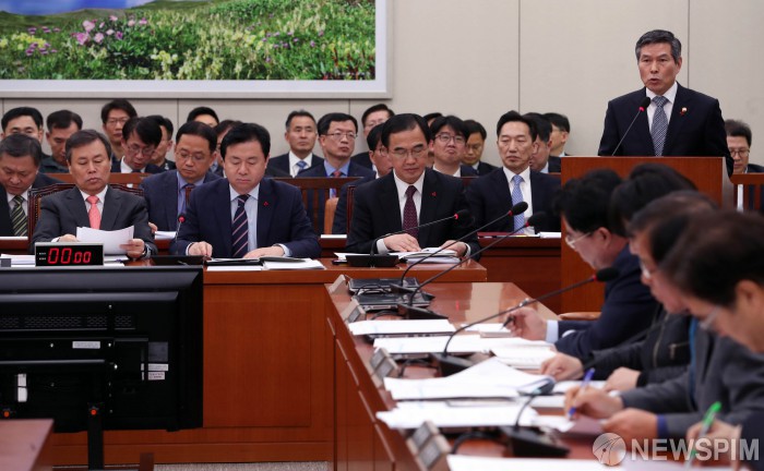 [서울=뉴스핌] 김학선 기자 = 정경두 국방부 장관이 9일 국회에서 열린 남북경제협력특별위원회에서 업무보고를 하고 있다. 2019.01.09 yooksa@newspim.com