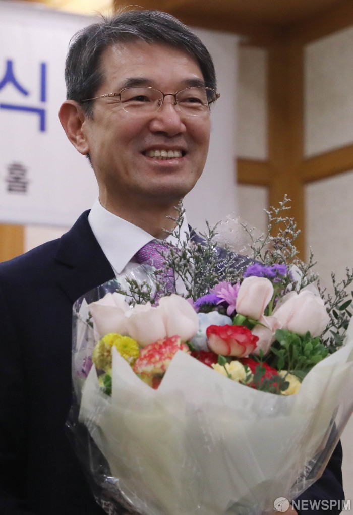 [서울=뉴스핌] 윤창빈 수습기자 = 안철상 법원행정처장이 10일 오후 서울 서초구 대법원에서 열린 ‘제 24대 안철상 법원행정처장 이임식’에서 환하게 웃고 있다. 2019.01.10 pangbin@newspim.com