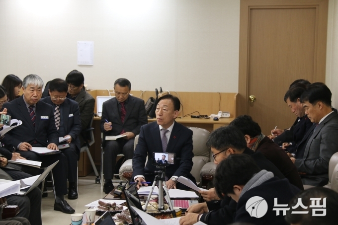 | 설동호 대전시교육감(가운데)이 23일 대전시교육청 기자실에서 열린 학생 교육복지 분야 기자간담회에서 올해 추진시책을 설명하고 있다.[사진= 라안일 기자] |