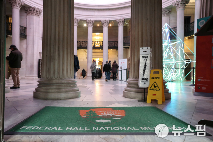 | [뉴욕 로이터=뉴스핌] 정윤영 인턴기자 = 28일(현지시각) 미국 뉴욕에 위치한 페더럴 홀 국립기념관(Federal Hall National Memorial)에서 관람객들이 전시물을 구경하고 있다. 한편 이번 연방정부 셧다운(일시적 업무중지)은 역대 최장인 35일을 기록했으며 약 80만명의 연방 공무원들이 이날 업무에 복귀했다. 2019.01.28. |