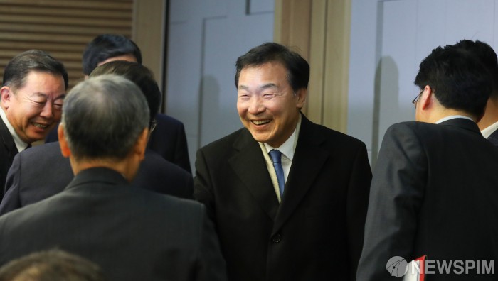 [서울=뉴스핌] 최상수 기자 = 손학규 바른미래당 대표가 11일 오전 서울 여의도 국회의원회관에서 열린 '개성공단 폐쇄 3년, 어떻게 할 것인가?' 토론회에서 참석자들과 인사를 나누고 있다. 2019.02.11 kilroy023@newspim.com