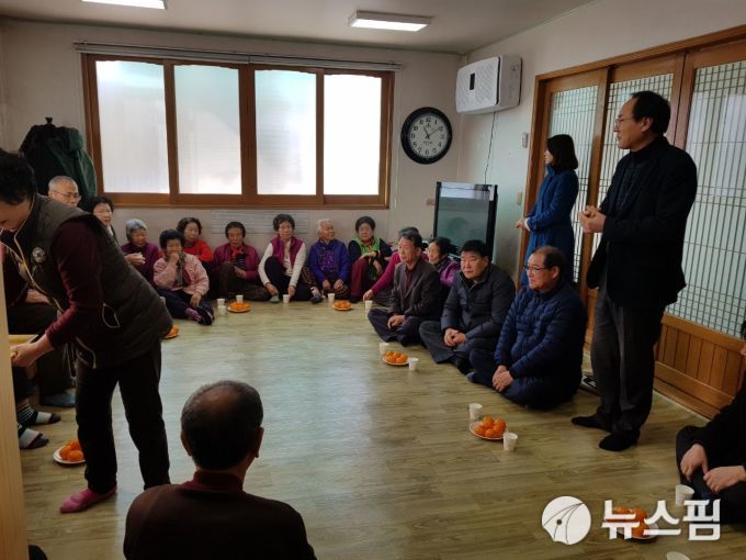 | 정상준 위천면장이 경로당을 방문해 애로사항을 청취하고 있다. 〔사진제공=거창군〕2019.2.11 |