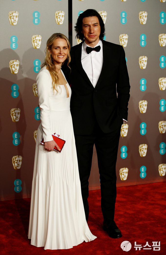 | [런던 로이터=뉴스핌] 정윤영 인턴기자 = 10일(현지시각) 영국 런던에서 제72회 영국 아카데미 시상식(BAFTA)이 열린 가운데 배우 아담 드라이버(오른쪽)와 부인 조안 터커가 참석해 포즈를 취하고 있다. 2019.02.10. |