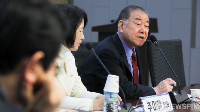 [서울=뉴스핌] 최상수 기자 = 문정인 대통령 통일외교안보특보(연세대 명예특임교수)가 15일 오후 서울 여의도 국회 의원회관 2세미나실에서 열린 '2019년 한반도 정세 전망'을 주제로 한 초청 간담회에서 발언하고 있다. 2019.02.15 kilroy023@newspim.com