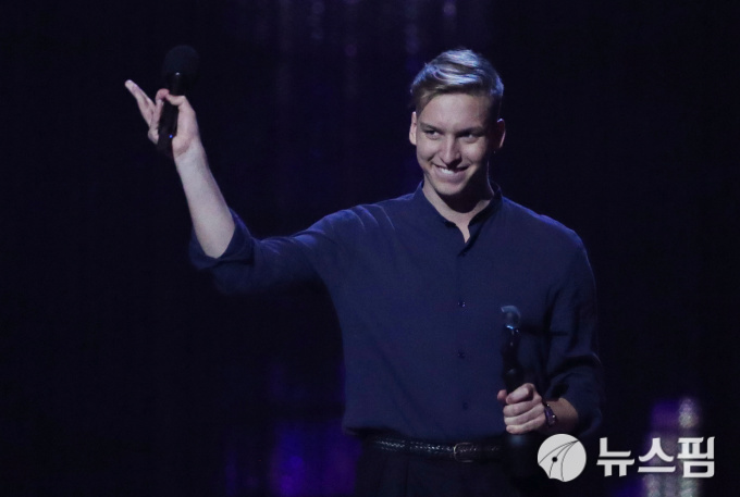 | [런던 로이터=뉴스핌] 남혜경 인턴기자 = 20일(현지시간) 영국 런던의 O2 아레나에서 열린 제39회 브릿(BRIT) 어워즈에서 '영국 남성 솔로 아티스트'(British Male Solo Artist)상을 수상한 가수 조지 에즈라. 2019.02.20. |