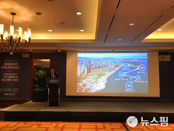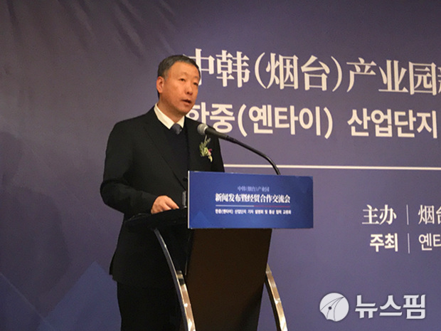 由中国烟台市人民政府、山东省商务厅主办的“韩中(烟台)产业园发布会暨经贸合作交流会”26日在韩国首尔举行。中方中国驻韩国大使馆经商处公参谷金生、山东省驻韩国商务代表处代表周向军、烟台市副市长张代令、韩中(烟台)产业园推进办专职副主任赵新志,韩方新万金开发厅投资战略局局长裴好烈、韩国贸易协会首席代表徐旭台、韩中交流协会副会长林彩悦、韩国中华总商会会长宋国平以及产业园主要负责人、韩国企业负责人、媒体记者百余人参加了活动。