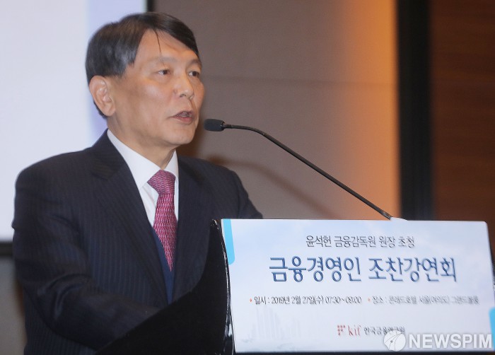 [서울=뉴스핌] 윤창빈 기자 = 손상호 한국금융연구원 원장이 27일 오전 서울 영등포구 콘래드호텔에서 열린 금융경영인 조찬강연회에서 인사말을 하고 있다. 2019.02.27 pangbin@newspim.com