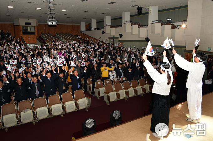 이어 삼일절 노래를 제창하고, 백년의 함성을 재연한 ‘대한독립-만세’ 만세 삼창을 외쳤다.