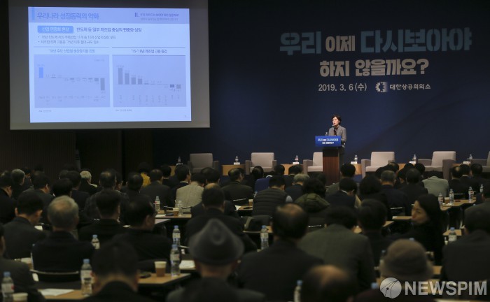 [서울=뉴스핌] 이형석 기자 = 서영경 대한상공회의소 SGI 원장이 6일 오전 서울 중구 대한상의에서 열린 '우리 이제 다시 보아야 하지 않을까요?' 컨퍼런스에서 주제발표를 하고 있다. 2019.03.06 leehs@newspim.com