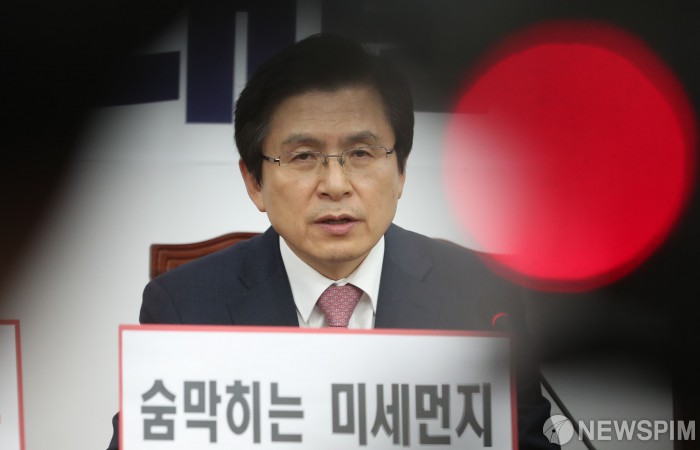 [서울=뉴스핌] 김학선 기자 = 황교안 자유한국당 대표가 6일 국회에서 열린 미세먼지대책특별위원회 전체회의에서 발언하고 있다. 2019.03.06 yooksa@newspim.com
