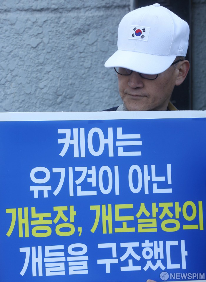 [서울=뉴스핌] 윤창빈 기자 = 14일 서울 종로구 종로경찰서 앞에서 박소연 케어 대표를 지지하는 지지자들이 기자회견을 하고 있다. 2019.03.14 pangbin@newspim.com