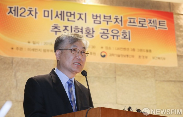 [서울=뉴스핌] 최상수 기자 = 배귀남 미세먼지 범부처 프로젝트 사업단 단장이 20일 오전 서울 중구 LW컨벤션에서 열린 제2차 미세먼지 범부처 프로젝트 추진현황 공유회에서 인사말을 하고 있다. 2019.03.20 kilroy023@newspim.com