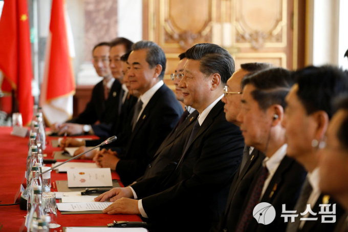 | [모나코 로이터=뉴스핌] 남혜경 인턴기자 = 24일(현지시간) 모나코의 모나코 대공궁에서 알베르 2세 국왕과 회담하는 시진핑(習近平) 중국 국가주석(중앙). 2019.03.24. |