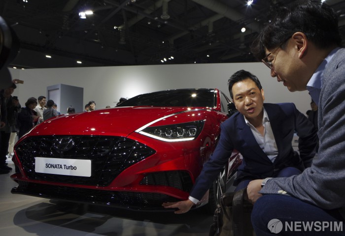 [고양=뉴스핌] 백인혁 인턴기자 = 현대차가 28일 오전 경기도 고양시 킨텍스에서 열린 2019 서울모터쇼 미디어데이에서 소나타 터보를 선보이고 있다. 2019 서울모터쇼는 이달 29일 금요일 개막을 시작으로 내달 7일 일요일 까지 전시된다. 2019.03.28 dlsgur9757@newspim.com