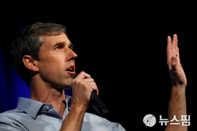 [워싱턴 로이터=뉴스핌] 김민정 기자 = 1일(현지시간) 미국 워싱턴에서 열린 '위 더 피플 서밋'에서 2020년 미 대선 민주당 경선 후보인 베토 오루어크 전 하원의원이 발언하고 있다. 2019.4.1.