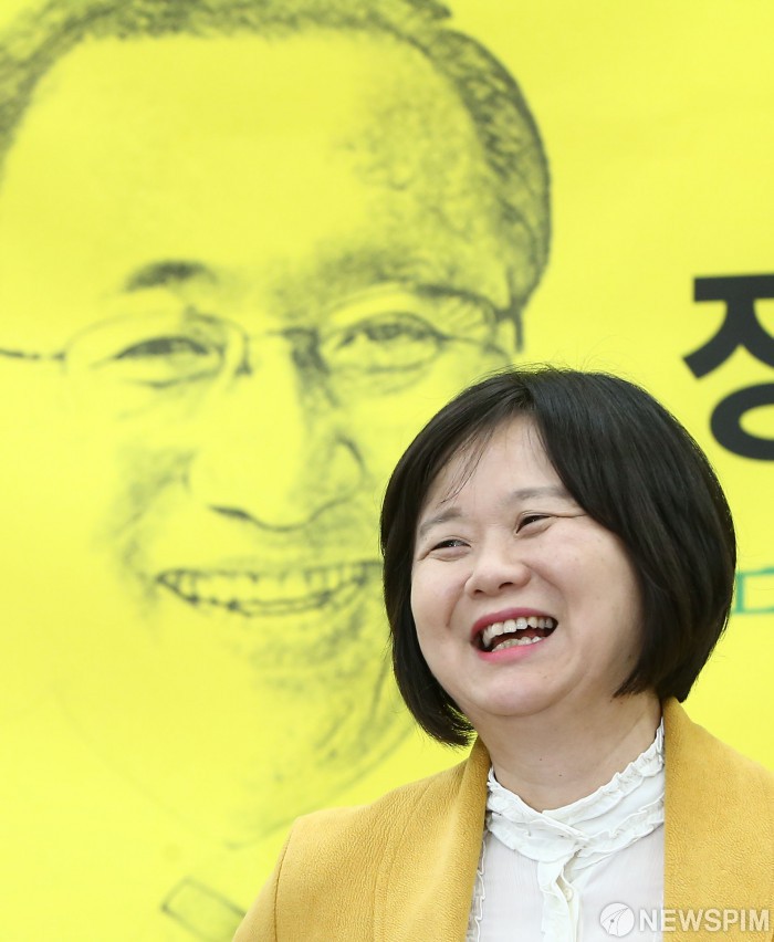 [서울=뉴스핌] 김학선 기자 = 이정미 정의당 대표가 4일 국회에서 열린 상무위원회에서 환하게 웃고 있다. 정의당은 지난 3일 치러진 4.3 보궐선거에서 고 노회찬 의원의 지역구였던 창원 성산에서 여영국 후보를 당선시켰다. 2019.04.04 yooksa@newspim.com