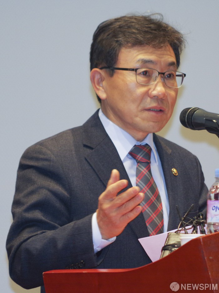 [서울=뉴스핌] 백인혁 인턴기자 = 권덕철 보건복지부 차관 겸 건강보험정책심의위원회 위원장이 10일 오후 서울 중구 포스트타워에서 열린 제 1차 국민건강보험종합계획 수립을 위한 공청회에서 인사말을 하고 있다. 2019.04.10 dlsgur9757@newspim.com