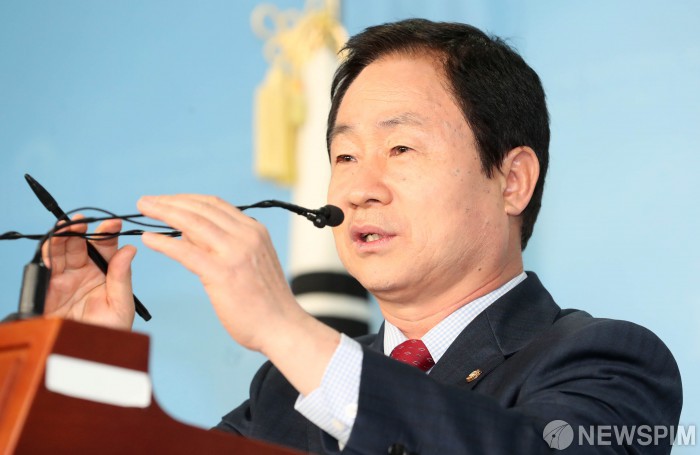 [서울=뉴스핌] 김학선 기자 = 주광덕 자유한국당 의원이 14일 국회 정론관에서 이미선 헌법재판관 후보자의 주식 거래 의혹과 이 후보자의 남편인 오충진 변호사가 제안한 '맞짱 토론'과 관련해 기자회견을 하고 있다. 2019.04.14 yooksa@newspim.com