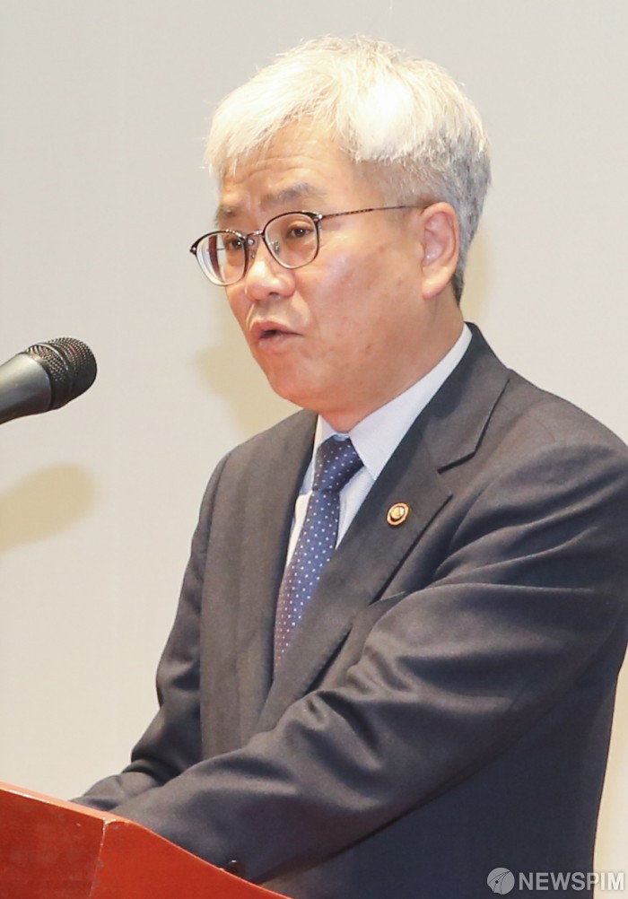 [서울=뉴스핌] 이한결 인턴기자 = 임대식 과학기술정보통신부 본부장이 16일 오후 서울 중구 포스트타워에서 개최된 ‘혁신성장동력 규제개선 공청회: 드론분야를 중심으로’ 에서 인사말을 하고 있다. 2019.04.16