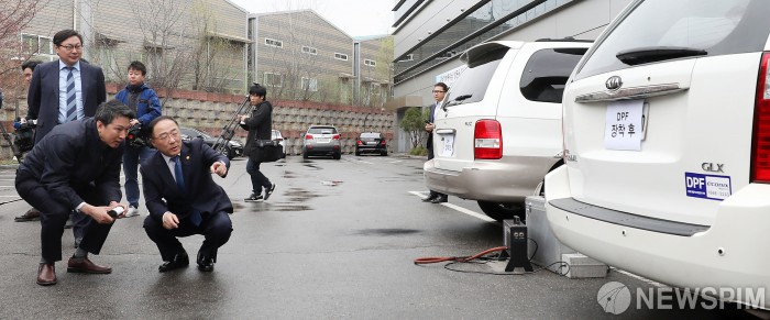 [사진] 홍남기 부총리 '매연저감 장치 장착한 차량 점검'