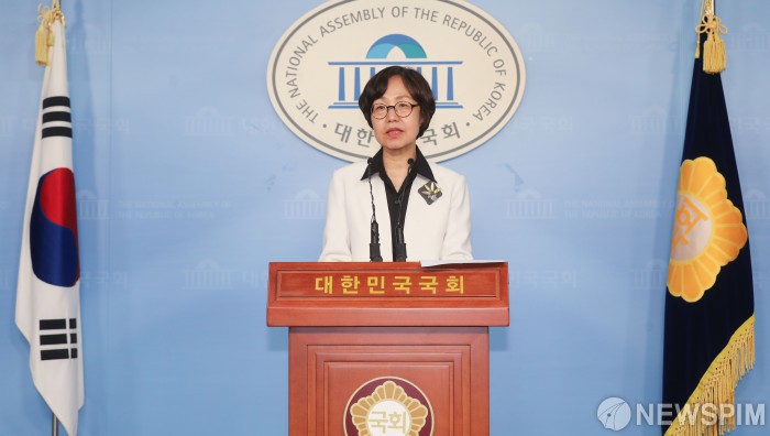 [서울=뉴스핌] 최상수 기자 = 권미혁 더불어민주당 원내대변인이 25일 오전 서울 여의도 국회 정론관에서 현안관련 브리핑을 하고 있다. 2019.04.25 kilroy023@newspim.com