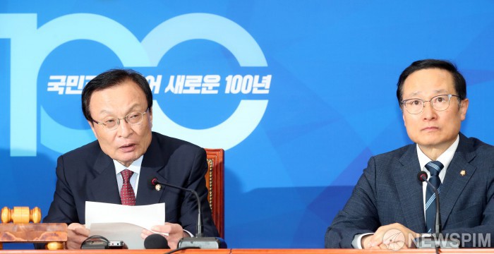 [서울=뉴스핌] 김학선 기자 = 이해찬 더불어민주당 대표가 26일 국회에서 열린 최고위원회의에서 발언하고 있다. 2019.04.26 yooksa@newspim.com