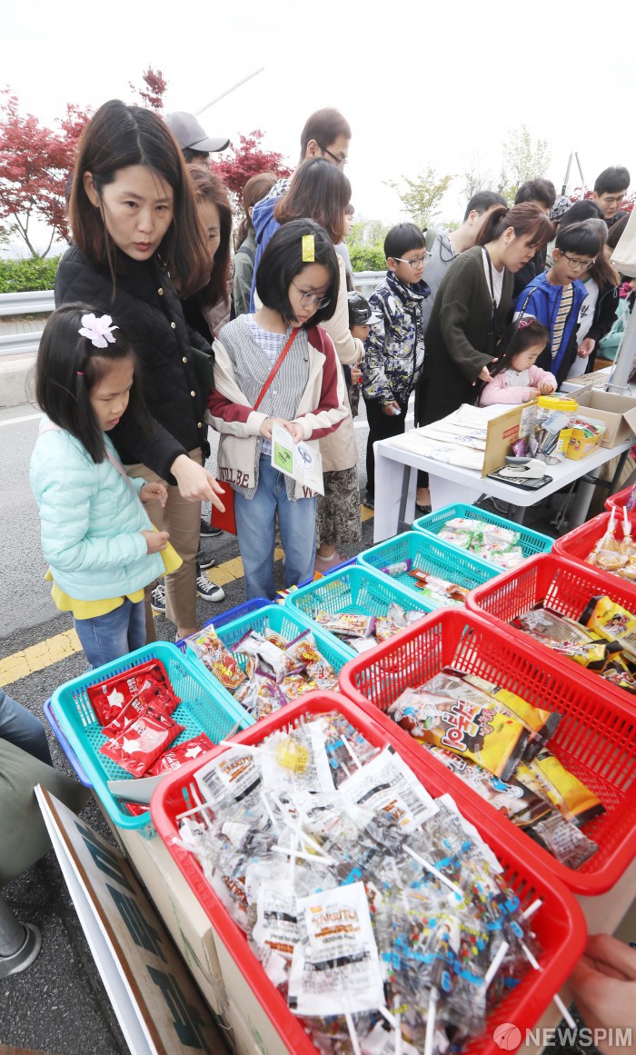 [서울=뉴스핌] 윤창빈 기자 = 28일 오후 서울 강동구 광진교에서 열린 ‘광진교 예쁘다리, 한강다리 페스티벌’에서 관광객들이 간식코너를 둘러보고 있다. 2019.04.28 pangbin@newspim.com