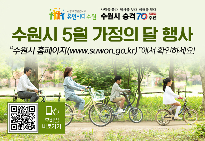 [수원=뉴스핌] 정은아 기자 = 수원시가 가정의 달을 맞아 5월 한 달 동안 시에서 열리는 행사 정보를 한눈에 볼 수 있는 웹페이지 '행복한 추억만들기! 수원시 5월 가정의 달 행사안내'를 개설했다.