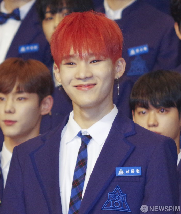 [서울=뉴스핌] 백인혁 인턴기자 = 연습생 '남동현'군이 30일 오후 서울 영등포구 63 컨벤션센터 그랜드볼룸에서 열린 Mnet <프로듀스 X 101> 제작발표회에서 취재진을 향해 포즈를 취하고 있다. 2019.04.30 dlsgur9757@newspim.com