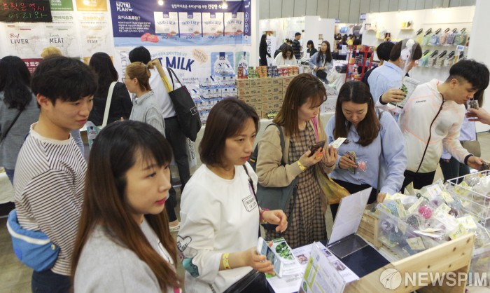 [고양=뉴스핌] 백인혁 인턴기자 = 3일 오후 경기도 고양시 킨텍스 제 2전시장에서 열린 집사와 반려묘를 위한 축제 '2019 서울 캣쇼' 행사장에서 관람객들이 고양이 장난감 부스를 살펴보고있다. '2019 서울 캣쇼'는 3일 금요일인 오늘을 시작으로 5일 일요일까지 진행된다. 2019.05.03 dlsgur9757@newspim.com