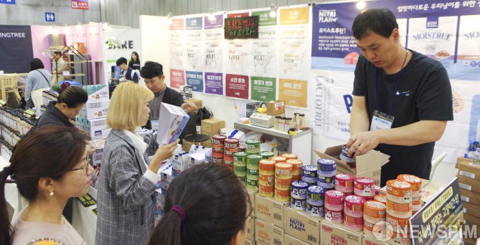 [고양=뉴스핌] 백인혁 인턴기자 = 3일 오후 경기도 고양시 킨텍스 제 2전시장에서 열린 집사와 반려묘를 위한 축제 '2019 서울 캣쇼' 행사장에서 관람객들이 고양이 간식을 구매하고 있다. '2019 서울 캣쇼'는 3일 금요일인 오늘을 시작으로 5일 일요일까지 진행된다. 2019.05.03 dlsgur9757@newspim.com