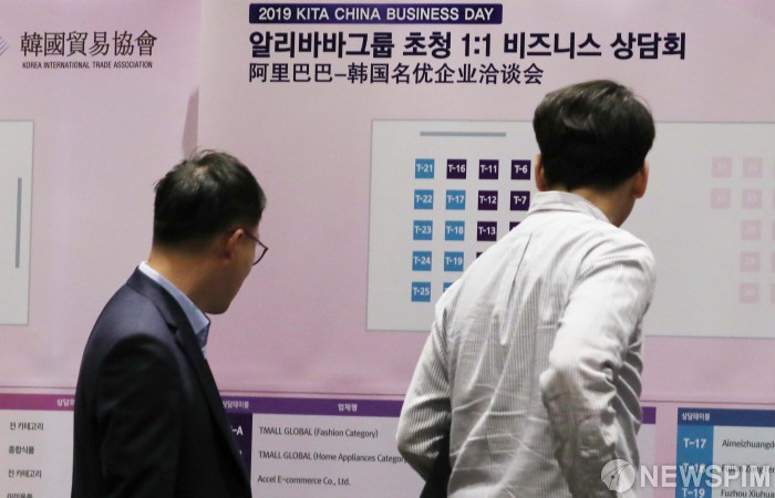 [서울=뉴스핌] 윤창빈 기자 = 14일 오전 서울 강남구 코엑스에서 열린 2019 KITA 차이나 비즈니스 데이 ‘알리바바그룹 초청 1:1 비즈니스 상담회’에 참석한 기업 관계자들이 중국 바이어들과 상담을 위해 위치를 확인하고 있다. 2019.05.14 pangbin@newspim.com