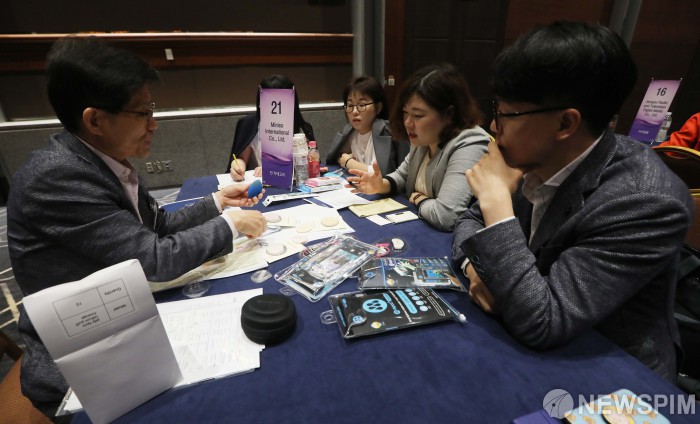 [서울=뉴스핌] 윤창빈 기자 = 14일 오전 서울 강남구 코엑스에서 열린 2019 KITA 차이나 비즈니스 데이 ‘중국 유망바이어 초청 비즈니스 상담회’에 참석한 기업 관계자들이 중국 바이어들과 상담을 하고 있다. 2019.05.14 pangbin@newspim.com