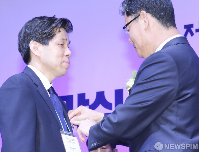 [서울=뉴스핌] 이한결 인턴기자 = 김연철 통일부 장관이 20일 오전 서울 중구 대한상공회의소에서 열린 ‘제7회 통일교육주간 개막식 및 평화·통일교육 컨퍼런스’에서 유공자 포상을 하고 있다. 2019.05.20 alwaysame@newspim.com