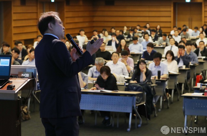 [서울=뉴스핌] 윤창빈 기자 = 김진수 중앙대학교 경영학부 교수 겸 서울창조혁신센터 이사장이 22일 오후 서울 중구 대한상공회의소에서 열린 국내외 모바일 커머스 진출전략 컨퍼런스에서 기조연설을 하고 있다. 2019.05.22 pangbin@newspim.com