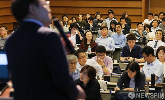 [서울=뉴스핌] 윤창빈 기자 = 22일 오후 서울 중구 대한상공회의소에서 열린 국내외 모바일 커머스 진출전략 컨퍼런스에서 참석자들이 기조연설에 집중하고 있다. 2019.05.22 pangbin@newspim.com