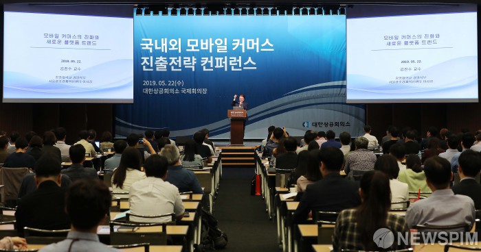 [서울=뉴스핌] 윤창빈 기자 = 김진수 중앙대학교 경영학부 교수 겸 서울창조혁신센터 이사장이 22일 오후 서울 중구 대한상공회의소에서 열린 국내외 모바일 커머스 진출전략 컨퍼런스에서 기조연설을 하고 있다. 2019.05.22 pangbin@newspim.com