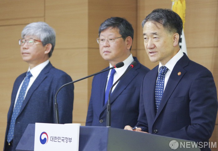 [서울=뉴스핌] 백인혁 인턴기자 = 박능후 보건복지부 장관(오른쪽)이 23일 오전 서울 종로구 정부서울청사 브리핑룸에서 '포용국가 아동정책'을 발표하고 있다. 이날 정부는 아동이 현재와 미래의 행복을 누릴 수 있도록 국가 책임을 확대하는 포용국가 아동 정책을 구체화 한다고 밝혔다. 2019.05.23 dlsgur9757@newspim.com