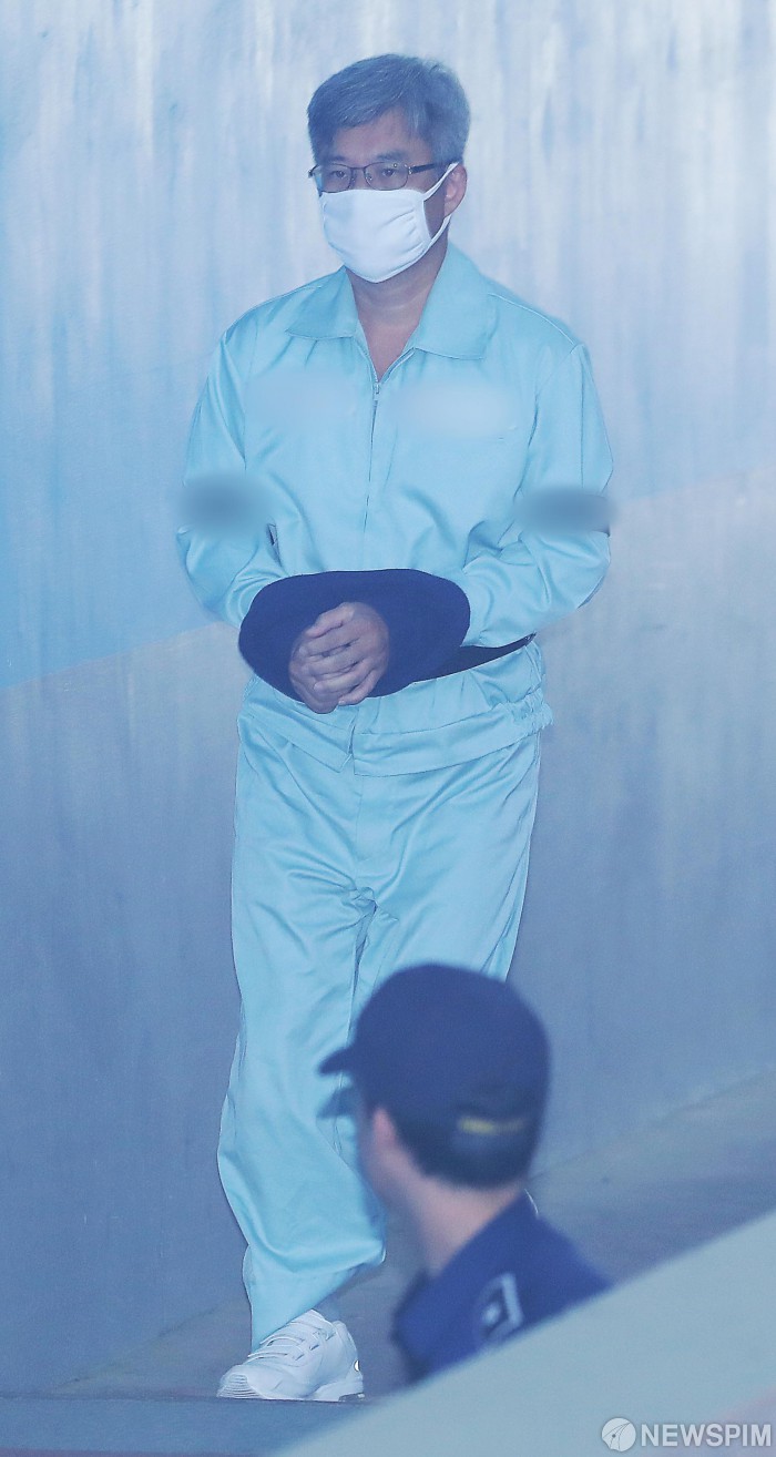 [서울=뉴스핌] 윤창빈 기자 = 아내 폭행ㆍ강간 혐의을 받는 ‘드루킹’ 김동원씨가 24일 오전 서울 서초구 서울고등법원에서 열린 선고 공판에 출석하고 있다. 2019.05.24 pangbin@newspim.com