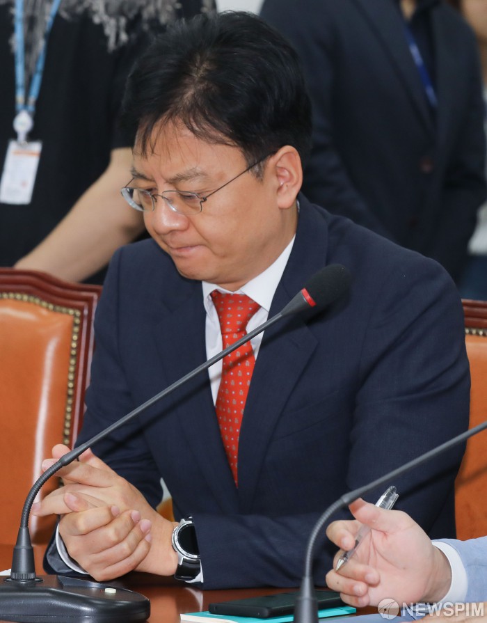 [서울=뉴스핌] 최상수 기자 = 장진영 바른미래당 당대표 비서실장이 24일 오전 서울 여의도 국회에서 열린 임시 최고위원회의에서 생각에 잠겨 있다. 2019.05.24 kilroy023@newspim.com