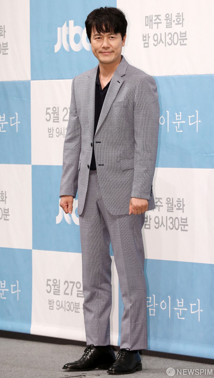 [서울=뉴스핌] 정일구 기자 = 배우 감우성이 27일 오후 서울 강남구 임피리얼 팰리스 서울에서 열린 JTBC 새 월화드라마 '바람이 분다' 제작발표회에서 포즈를 취하고 있다. '바람이 분다'는 이별 후, 다시 사랑에 빠진 두 남녀가 어제의 기억과 내일의 사랑을 지켜내는 로맨스를 그린다. 2019.05.27 mironj19@newspim.com