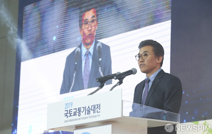[고양=뉴스핌] 이형석 기자 = 손봉수 국토교통과학기술진흥원 원장이 29일 오후 경기 고양시 킨텍스에서 열린 2019 국토교통기술대전 개막식에서 개회사를 하고 있다. 2019.05.29 leehs@newspim.com