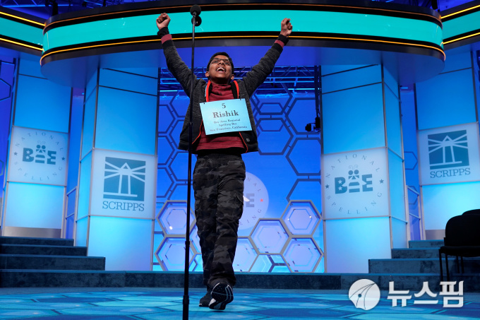 | [옥슨힐 로이터=뉴스핌] 백지현 기자 = 미국 캘리포니아주 산호세 출신 라시끄 간다스리(13) 군이 미국 메릴랜드주 옥슨힐 내셔널하버에서 열린 세계 최대 영어 철자 말하기 대회인 92회 '스크립스 내셔널 스펠링 비'의 결승전에서 마지막 영어 단어의 철자를 말한 뒤 두 손을 치켜 올리고 있다. 이날 대회에서 간다스리 군 외 7명의 공동 우승자가 배출됐다. 2019.05.31. |