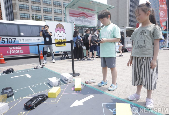 [서울=뉴스핌] 윤창빈 기자 = 2일 오후 서울 중구 서울시청 광장에서 열린 ‘2019 공유의 날’ 행사에 참가한 아이들이 RC카 조종 체험을 하고 있다. 공유의 날 행사는 공유 문화 확산 및 국내 공유 경제를 이끄는 기업·단체 홍보를 위해 서울시가 개최하였다. 2019.06.02 pangbin@newspim.com