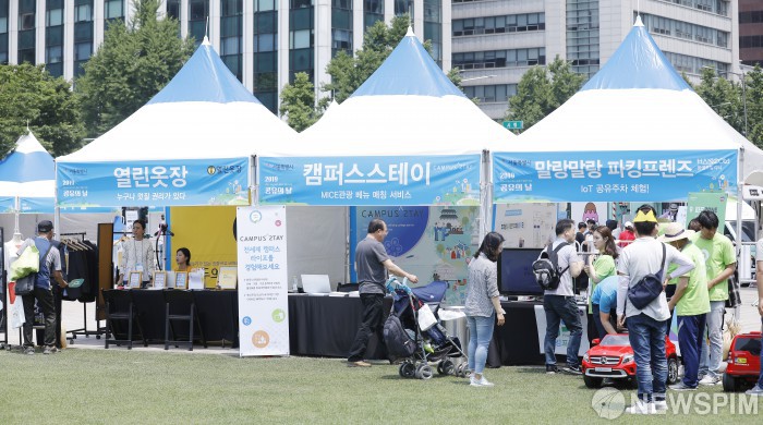 [서울=뉴스핌] 윤창빈 기자 = 2일 오후 서울 중구 서울시청 광장에서 ‘2019 공유의 날’ 행사가 열리고 있다. 공유의 날 행사는 공유 문화 확산 및 국내 공유 경제를 이끄는 기업·단체 홍보를 위해 서울시가 개최하였다. 2019.06.02 pangbin@newspim.com