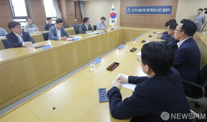 [과천=뉴스핌] 윤창빈 기자 = 조명래 환경부 장관이 4일 오후 경기 과천시 정부과천청사에서 열린 환경부 불법 폐기물 특별수사단 출범식에서 인사말을 하고 있다. 2019.06.04 pangbin@newspim.com