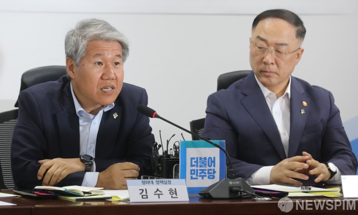 [서울=뉴스핌] 최상수 기자 = 김수현 청와대 정책실장이 10일 오전 서울 여의도 국회의원회관에서 열린 확대고위당정협의회에서 발언하고 있다. 2019.06.10 kilroy023@newspim.com